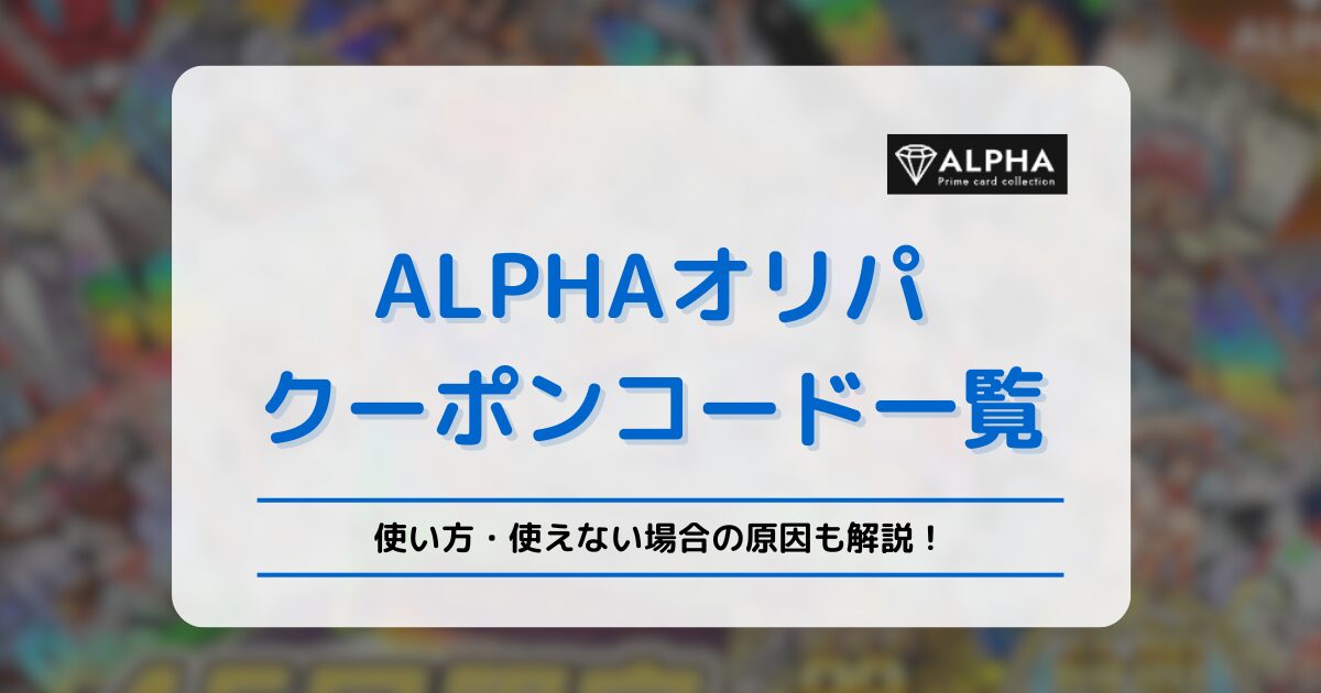 本記事では、2025年最新版のALPHAオリパのクーポン情報や、ALPHAオリパのクーポンコードの使い方などについて詳しくご紹介します。