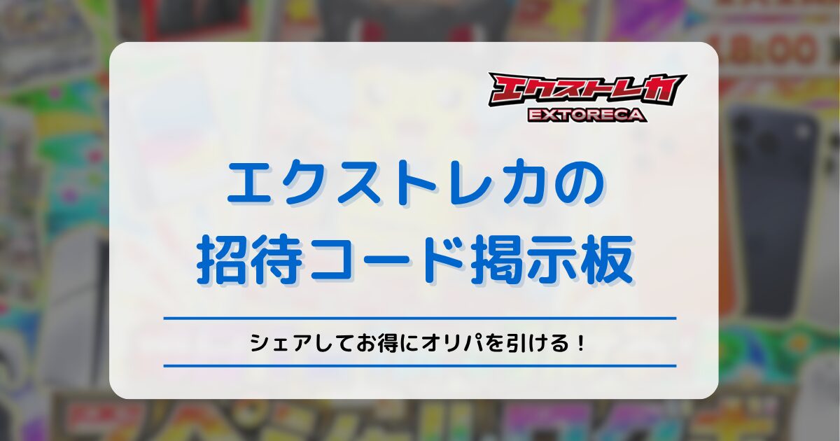 DOPA、日本トレカセンター、エクストレカ、オリパワンなど、オンラインオリパの招待コードを自由に書き込んで共有いただける掲示板です。
