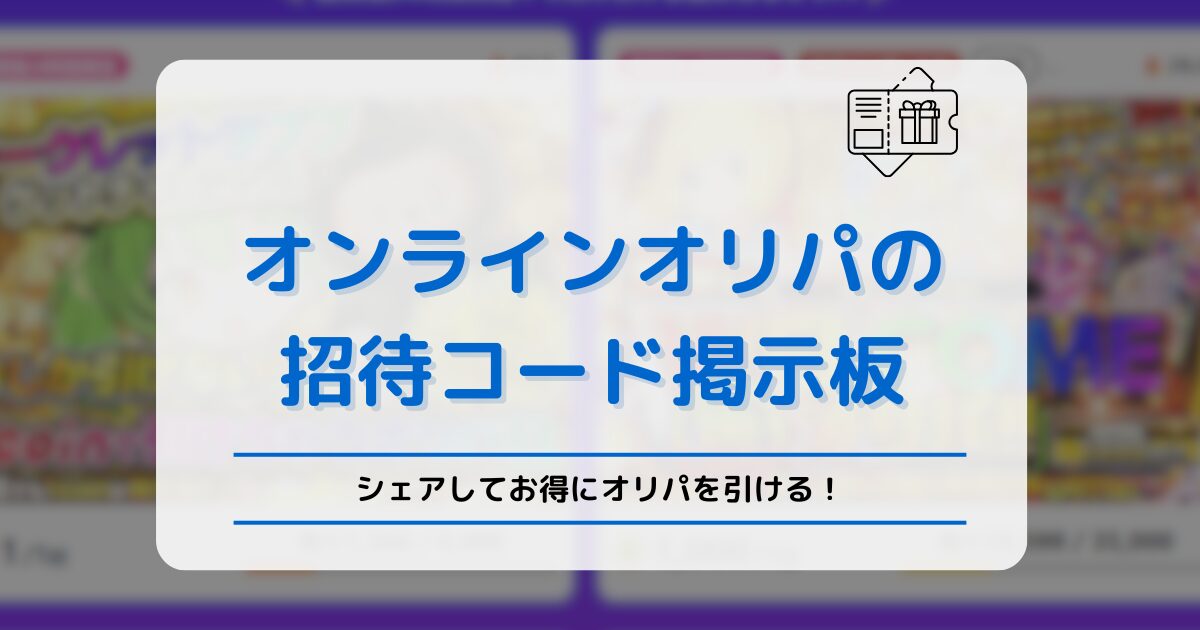こちらは、オンラインオリパの招待コードを、皆さまで共有いただくための掲示板です。