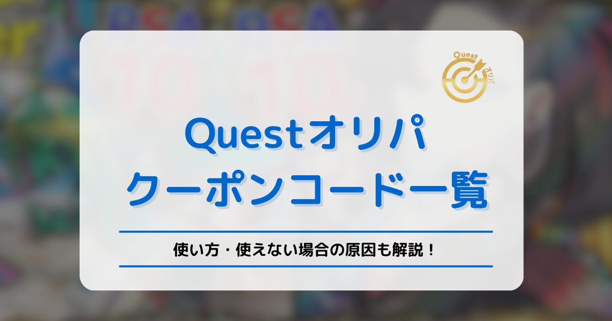 この記事では、Questオリパにおけるクーポンコードについて、配布方法や利用手順などをまとめました。