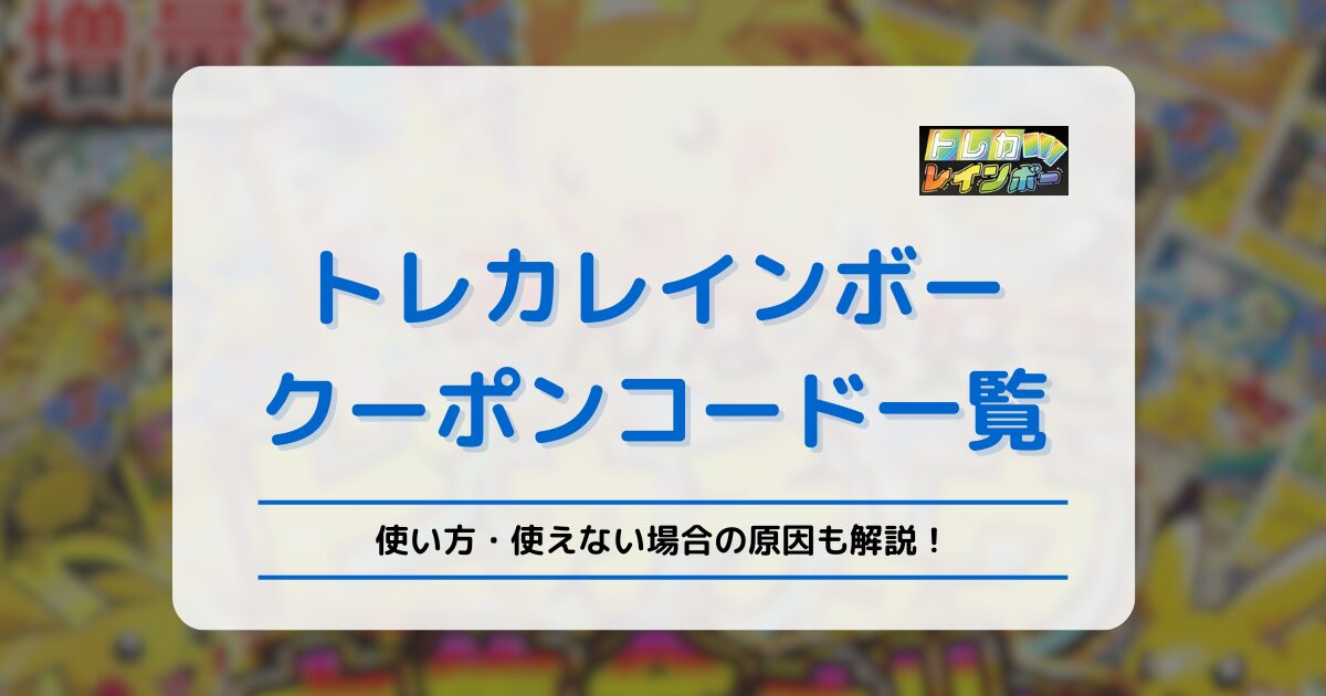 この記事では、トレカレインボーのクーポンコード一覧やその使い方、さらに招待コードの仕組みまで詳しく解説します。