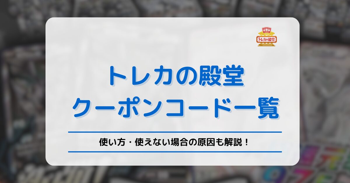 トレカの殿堂のクーポンコードの使い方や、使用できない際の対処法なども解説しますので、ぜひ最後までご覧ください!